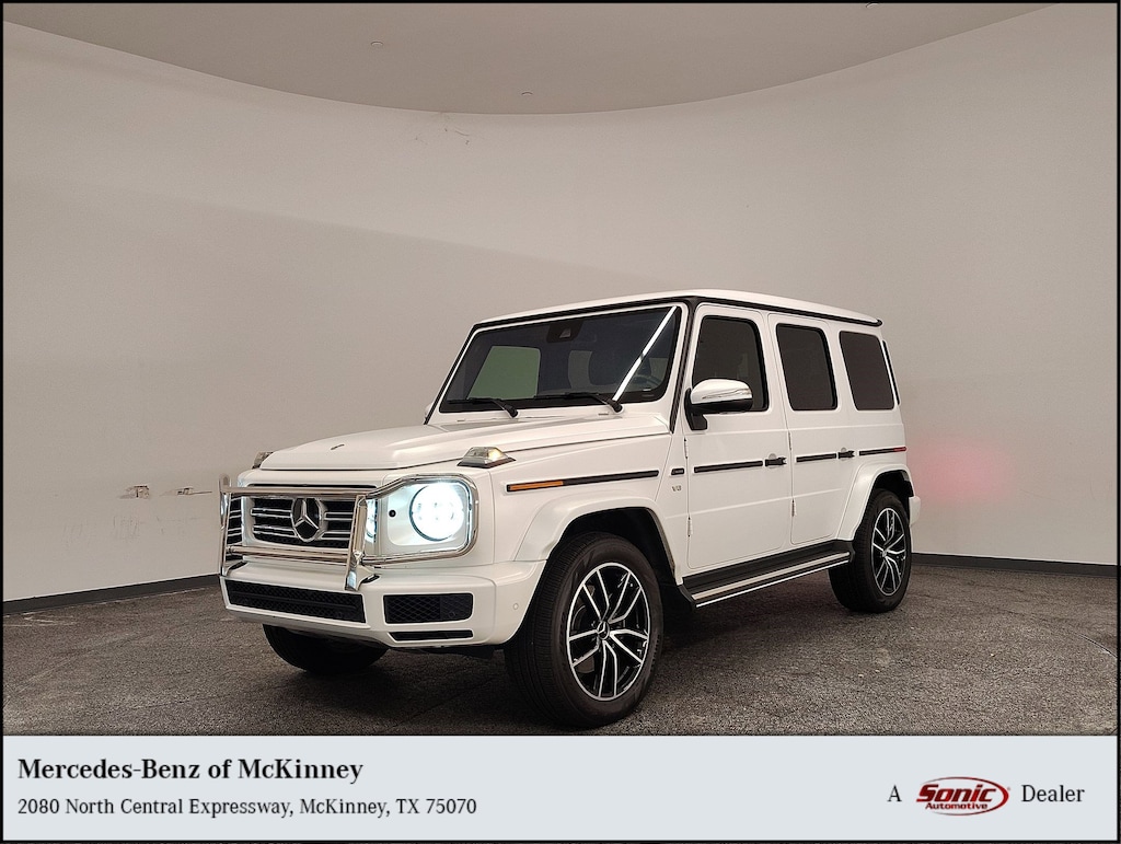 AMG LINE, EXCLUSIVE INTERIOR PACKAGE, NAVIGATION SYSTEM!!! This 2024 Mercedes-Benz G-Class 550 equipped with Blind Spot Monitor, Front Collision Mitigation, Cross-Traffic Alert, Lane Departure Warning, Lane Keeping Assist, Automatic Parking, Back-Up Camera, Adaptive Cruise Control, Heated Rear Seat, Multicontour Front Seats, Sport exhaust, and much more! This is a One Owner Clean Carfax vehicle. The Sonic Automotive difference: Each vehicle completed a safety & reconditioning process by one of our Certified technicians including a full inspection, road test and updating of recommended services. Our Sonic pricing makes buying a Pre-Owned Vehicle easy and convenient by giving you the markets best price right up-front, eliminating the hassles of negotiations. Our professional team will be delighted to verify any information and answer any questions you may have. Please chat, e-mail or call us today to schedule your test drive and experience the difference for yourself at Mercedes-Benz of McKinney.